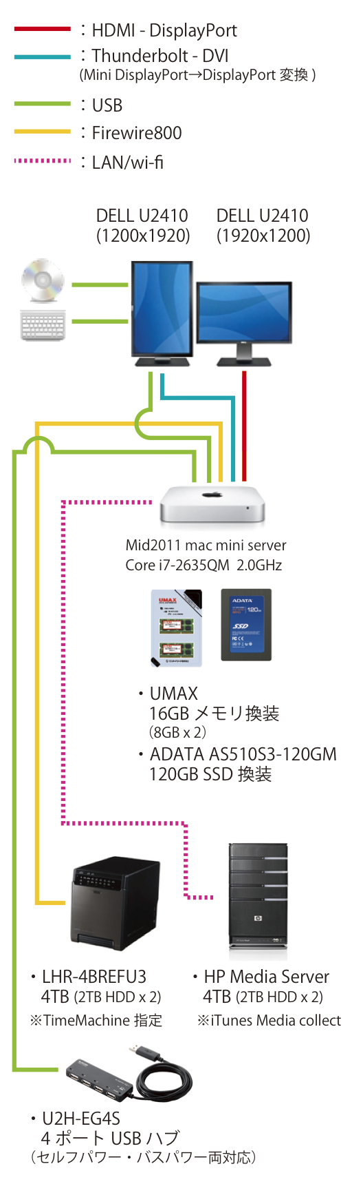 我が家で稼働中のMacは3台、osx10.6まではHP Media Server(WHS)にTime Machineをやらせていたんですが、osx10.7以降はWHSが対応しなくなり(WHS2011 & netatalkは不安定だし)HPのサポートにも散々な目にあったので、昨年mac miini server(Mid2011)導入以来、我が家のMacのTime Machineバックアップは、mac mini serverの外付けHDDで一括させています。