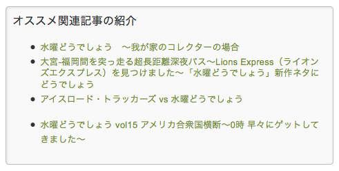 このブログの記事巻末にある「オススメ関連記事の紹介」欄は、これら2つを一枠にまとめて表示させています。