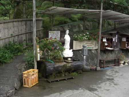 お宿までは飯田市からいったん天竜川沿いをにくだり、いわゆる「遠山郷」と言われる地域を抜けていきます。そしてお目当ては日本一ミネラル豊富な旨い水と言われている龍淵寺の「観音霊水」採取です。(前日に20Lポリタンを3個購入)上村市街に入って5分も走らないで地味〜な登り口が見つかります。狭い道をズンズン最後まで登っていくと車7〜8台が停まれる駐車場があって、すぐそばで水が汲めます。お味の方はというと、たしかに弱アルカリの硬水らしい喉ごしですが、普通のミネラルウォーターに比べても10倍以上のカルシウム、マグネシウムを含んでいるとは思えない旨さです。「霊水」というと眉に唾つけたくなる話ですが、科学的にも長寿をもたらす優れた鉱水だと言われています。また龍淵寺を下ったところに「かぐやの湯」という温泉施設があって、今回は昼食だけでしたが、屋外に足湯場があってほんの5〜6分だけ浸けておいただけなのに、足裏スベスベ! 観音霊水の温泉と言ってもいいでしょう。かなりの効能が期待できるのではないかと、とお勧めです。