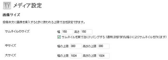 WordPressのデフォルト設定では投稿アップロード画像を元に3種類のサムネールを自動的に作成するようになっています(管理画面メニューの「設定」/「メディア設定」で確認、編集)