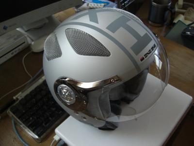 もう5年以上使っていたジェット型ヘルメットのシールドが擦り傷だらけで、夜の走行が危険だったので、シールド型番を調べて交換しようと思ったのですが.....6500円もします。気がつけば国産ヘルメットの一流品どころは3〜4万円するんですね。そこで仕事用に割り切って、Yahooオクで3200円(税込、送料込!)のものを購入。届いてみると、カタチはナカナカ!しかも予備シールド付き!(何故こんな価格で商売できるか不思議)ただし内装は相当ちゃちだし、かぶり心地も並み以下、ロングツーリングなどには使えません。
