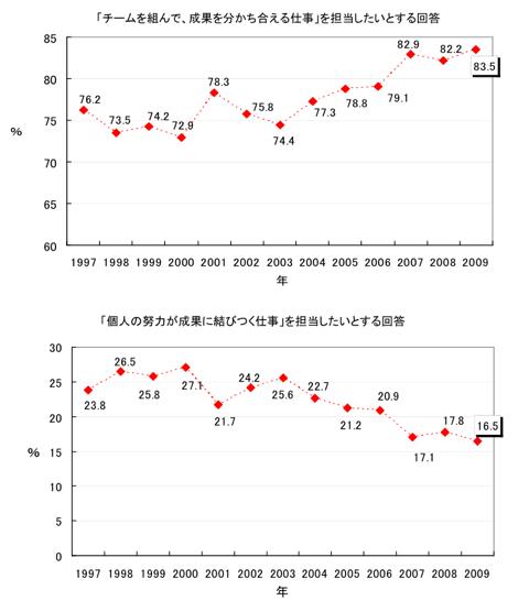 (財)日本生産性本部...なんともキナ臭い名称の団体ですが、実体はともかく毎年おもしろい調査データを掲載してくれるトコロではあります。「 2009 年度 新入社員意識調査」も興味深い内容でした。