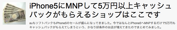 ※アップルが突如SIMフリー版iPhone5s/5cの国内販売を始めましたが、1年毎に一喜一憂させられる高額商品なんて馬鹿馬鹿しいかぎりです。3キャリア揃い踏みしてくれたおかげで各キャリアを”MNP本体一括ゼロ円”セールで乗り継げば、半年〜1年落モデルを正味無料で所有し続けられます。これもホントに馬鹿馬鹿しいことですが、そんな市場サイクルがあるのだから使わない手はないです。