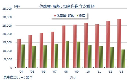 アベノミクス万歳!2013年倒産件数22年ぶり低水準、自動車メーカーはベースアップ満額回答〜休廃業・解散件数は過去10年で最多更新の矛盾
