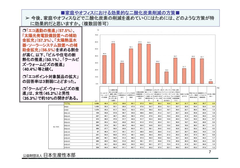 「今後、家庭やオフィスなどでCO2削減を進めていくには、どのような方策が効果的か?」