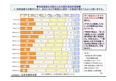 「地球温暖化対策のために、あなたはどの程度なら家計への負担が増えてもよいと思いますか?」