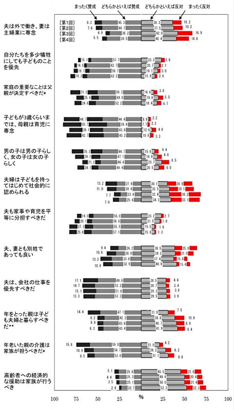 記事の導入に引っ張り出されて存外な扱いを受けている「国立社会保障・人口問題研究所」なるトコロの資料「第4回全国家庭動向調査」を読んでみました。