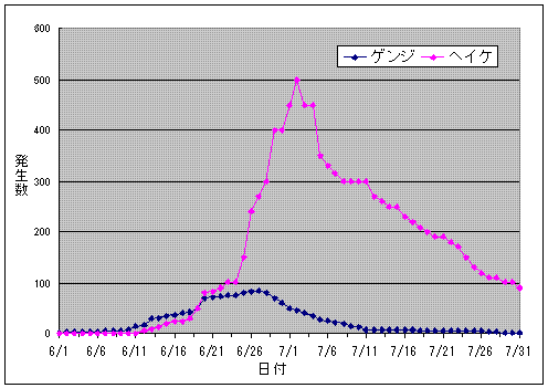 昨年のホタル発生状況(東我妻町WEBサイト)