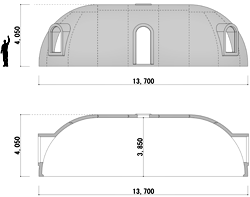 拡張型ロングドームにして内装間仕切りと生活ユニットを組み込んでもフツーの定形木造住宅並か安上がりに済む感じかなぁ...