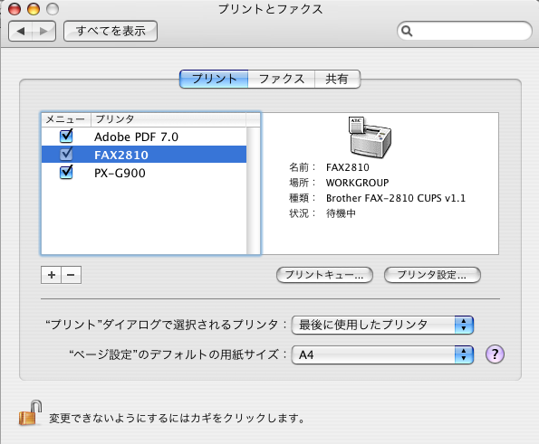 Mac(OSX)はメジャーアップデート毎に設定パネルの仕様が変わるので確かに煩わしいです。OSX10.4での接続手順覚書を追加しておきます。・「システム環境設定」の「プリンタとファクス」を開きます