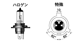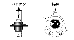 バイクメーカー各社が純正品として販売している各種ライトバルブに適合するハロゲンバルブを(株)M&Hマツシマが登録商標化して扱うようになり、ハロゲンバルブを販売するところが ”H4”等の一般のライトバルブの規格と同列に取り扱うようになりました。