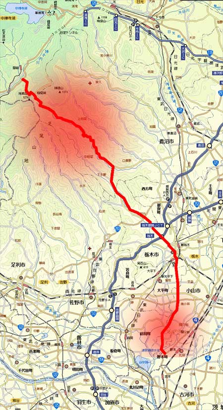 さいたま市からは産業道路〜国道125号で古賀まで北進して、国道4号を野木町から折れ松原大橋を渡って、栃木市に抜けて行く道です。快晴の日には日光連山と富士山が見渡せる「真っ平ら」な田園を渋滞とは全く無縁に快走できます。