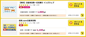 ※サイトトップから「自動車保険」で検索するとポイントゲットできる一括請求項目が表示されます。
