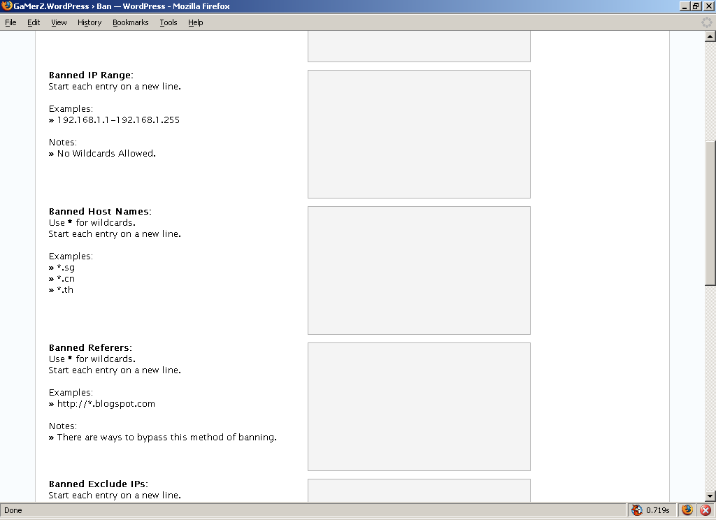WP-Banの設定画面でSPAMブロック設定を記述します。SPAMブロック設定は