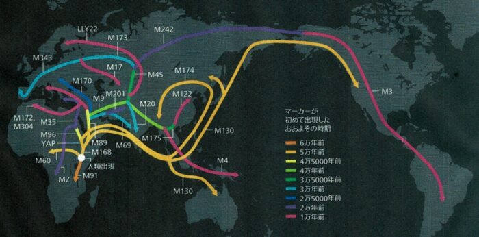 2005年くらいから始まったいわゆる「Y染色体のハプログループ追跡プロジェクト」によって、人類のルーツが世界拡散した大まかな流れが明らかになったそうです。