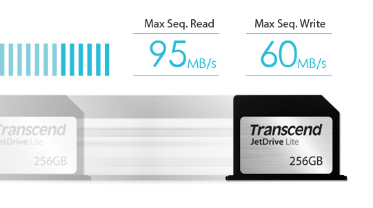 MacBook Pro、MacBook AirのSDスロットにピッタリサイズではみ出しがない専用サイズのSDカードをラインナップしているTranscendのJetDriveシリーズのモデル対応表です。転送速度・体感的にはwi-fi無線LANでのアクセス程度です