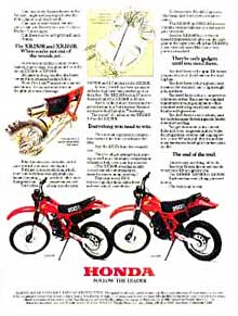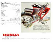 空冷4stSOHCシングル195cc。XL125Sベースのエンジンをフルサイズのコンペティションボディに搭載する。リヤサスペンションは初のプロリンクでホイールトラベルは246mm。フレームは鋼管ダイヤモンド、前後ブレーキはドラム。エンデューロレースを念頭において小型のヘッドライトとテールランプを装備する。テールバッグ標準装備。
