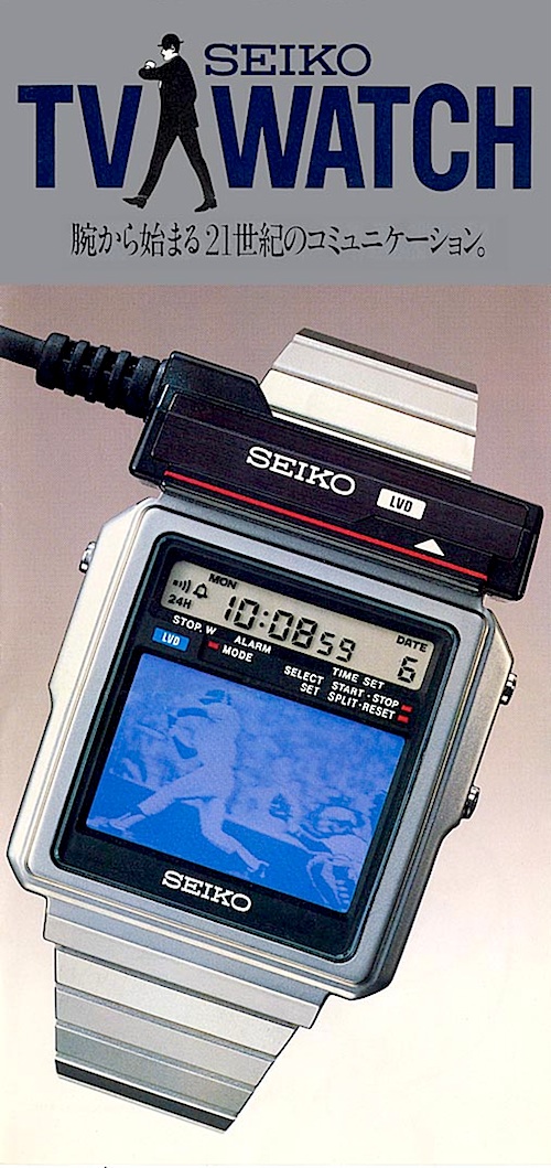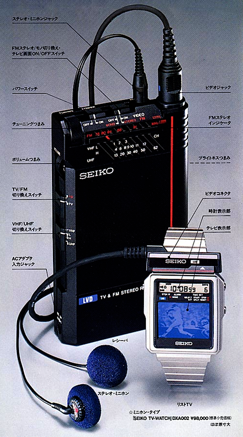 35年前の集積技術ではチューナーを腕時計に押し込むこと叶わず、TV視聴時にチューナーを腕時計に有線接続してから覗き込むという間抜けな落ちなのですが、この時代なりに”あるといいな”の実現をマーケティング戦略だと勘違いして猪突猛進したのでしょう。