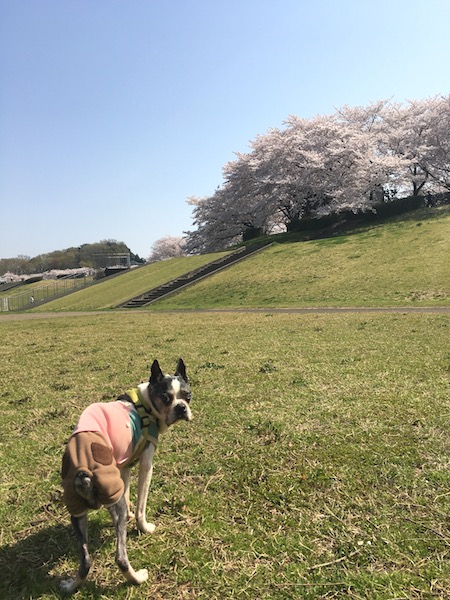 ただ午前10時過ぎには22度越え、昼過ぎには夏日というお花見散歩には汗が滲むちょっとこの季節には似つかわしくない日和、連れ出したさんちゃんは途中へたりこんでしまいました。