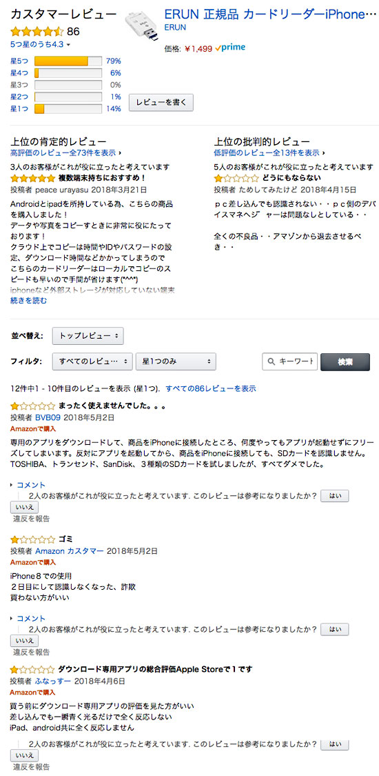 直近のレビューがこんな調子だとフツー購入意欲は萎えますが、昨年購入した知人によれば「ウチでは大丈夫だよー」と能天気な返信でしたし、高額商品というワケでもないので先週末に使用するmicro SDカードと同時購入。