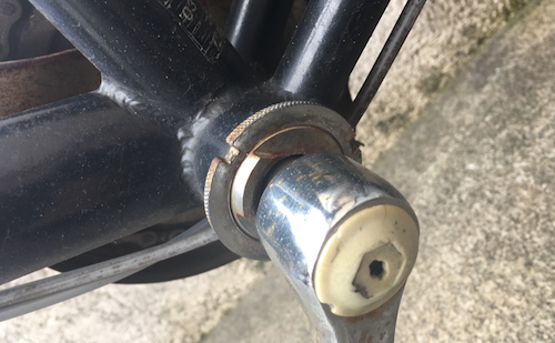 現在の自転車でフツーに使われているコッタレス・クランク、昔はクランクをハンガーに固定するのにコッターピンを使うのが主流でしたが、国内では60年代後半頃からコッターピンを使わないコッタレス・クランクが登場し現在に至ります。これはウンチク辞典のコピペではなく実体験というヤツ