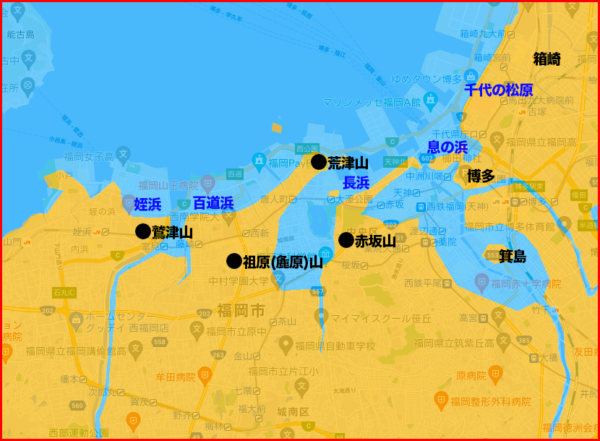 【博多編】蒙古・高麗連合軍上陸時の合戦舞台、赤坂山、麁原山と周辺地域