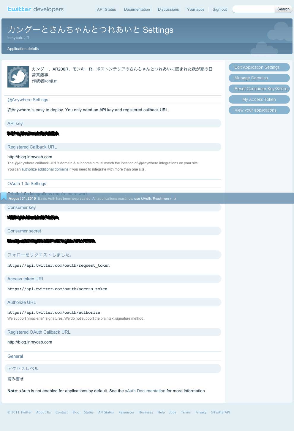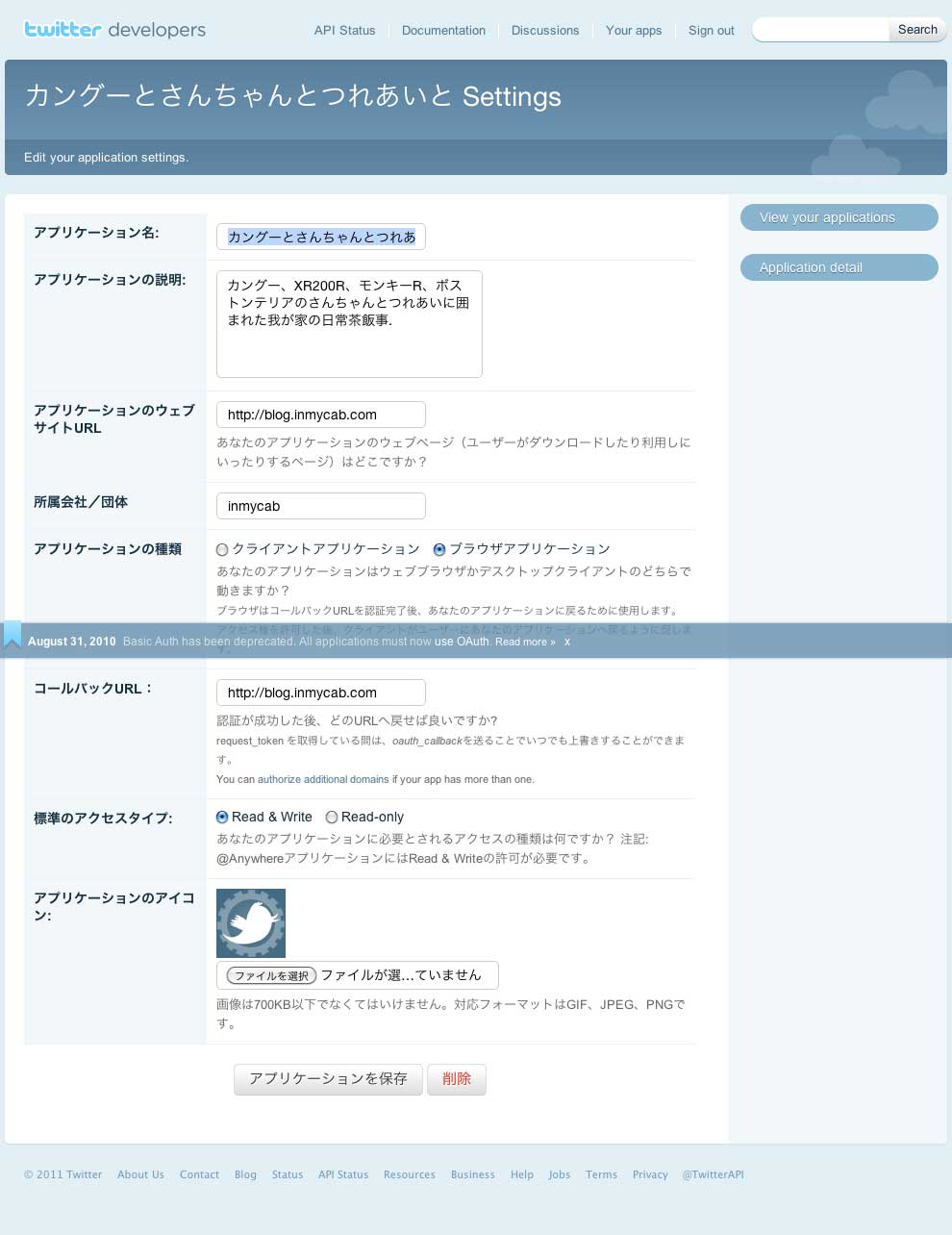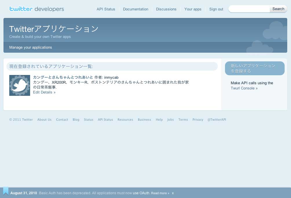Twitter...昔「mini blog」として紹介されたときにアカウント作成して実験していたコトがありました。今回はブログ更新をTwitter配信するのに使ってみることにしました。あんまり久しぶりなんでTwitterからパスワード送ってもらって、アプリを作って、えんやらやっと形になりました。WordPressの記事更新をTweetしてくれるのに使ったプラグインは、つい先日WP3.1対応版にアップデートされた「WP to Twitter」Twitter向けに「Cli.gs」「Bit.ly」「YOURLS」というURL 短縮サービスもアカウント取得すれば使えます。Twitter向けに「WP to Twitter」プラグインを使うには、先んず Twitter deveropers で予めアプリ登録をする必要があります。
