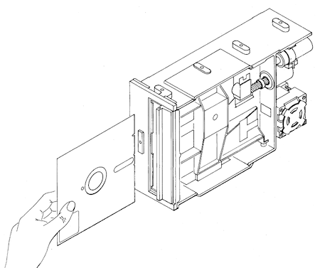 フロッピーディスクのメディア本体表面は酸化鉄でコーティングされており、ディスクがコンピュータのディスクドライブに挿入されると、このメディア上に情報が磁気的なデータとしてに書き込まれ、データの容易な読み出し、書き換えが可能にします。