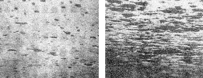ちょうど波を削り取るサーフィンの軌跡のように...そんな事を思いつきました。そんな都合のいいものがあるだろうか....FDには予め潤滑剤成分を含有させているのでミクロ的には潤滑剤成分が磁気ヘッドとFDの間に介在しています。接触・滑走がスムーズであればコンタクト状況は変わらないはずだから...磁気ヘッド表面を乳化剤、界面活性剤、油剤等で覆い一定時間FDを滑走させた後の磁気ヘッド表面の状態を観察することを思いつきました。うまくいく気はしませんでしだが....結果としてはこれが媒体の摺動評価の決め手になりました。αスルフォン酸ナトリウム/xxx脂肪酸エーテル2.5%アセトン溶液で磁気ヘッド表面に薄い皮膜を形成し、FDを摺動させると媒体磁性膜の堅さ、潤滑剤の種類等で、摺動後に残る皮膜状況が明らかに異なることが解りました。