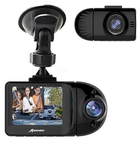 ドーム型レンズにより車内を中心に全方位を一括記録する、いわゆる360度アクション・カメラの流れで作られたタイプ。後方視界は車内越しになるので鮮明とは言い難いのと、車内に障害物があると意味をなさない、動画再生には専用アプリが必要なトコもちょっと... - 車内搭載の前後2カメラ型