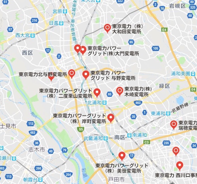 さいたま市周辺の変電所