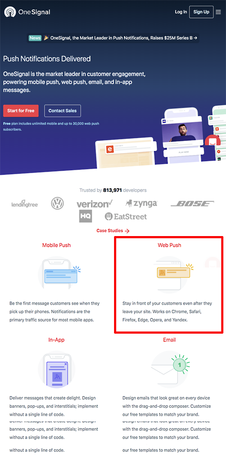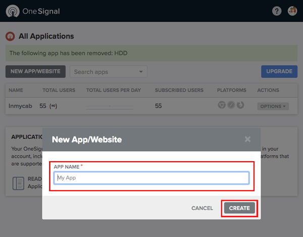 OneSignalのプッシュ通知サービスを利用するためには、https://onesignal.com/ で会員登録をする必要があります。