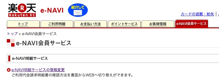 年会費無料の楽天カードですが、一般の無料カードと違って 郵送明細(デフォルト)を受け取るままにしておくと、 80円×12ヵ月=960円/年間の費用がかかります。これを WEB明細の『e-NAVI明細サービス』に切り替えると無料 になるというカラクリです。 https://e-navi.rakuten-kc.co.jp/mem_top