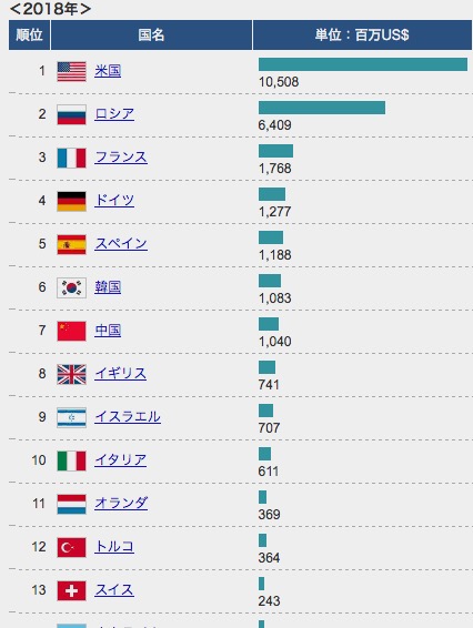 日本には武器輸出三原則があり、武器の輸出や国際共同開発を事実上行うことができません...でしたが、現在はちょっと違う状況にあります。3年前は大問題のように言われたモンですが喉元過ぎればなんとやらです。それでも世界の武器輸出国ランキングとしては日本の武器輸出額は無いも同然であります。