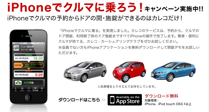 APPLE iPhoneのテレビCMの中でiPhoneアプリを使ってクルマの解錠シーンがあった。「あれば便利かも」とアプリを検索してもそれらしいものが見つからず、オフィシャルのガセネタかい?とか思っていたら実在していました。三井物産のカーシェアリング CARECO