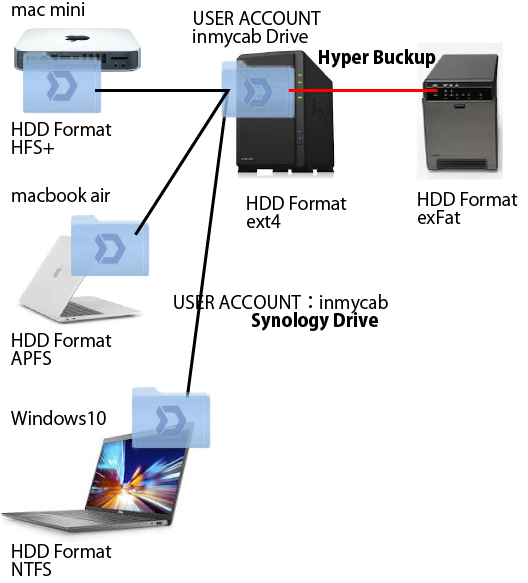 現在、マルチプラットフォームからの同期・バックアップには「Synology Drive」を、DiskStation DS216自体の外部ディスクへのバックアップには「Hyper backup」を利用しています。それぞれ全く異なるファイルフォーマットからデータをリンク同期しているのだから感心します。