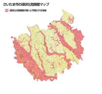| ・さいたま市の揺れ易さマップ(東京湾北部地震想定) ・さいたま市の危険度マップ(東京湾北部地震想定) ・さいたま市の揺れ易さマップ(関東平野北西部緑断層帯地震想定) ・さいたま市の揺れ易さマップ(さいたま市直下地震想定) ・さいたま市液状化マップ |