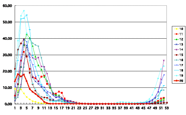 インフルエンザ過去10年間との比較グラフ