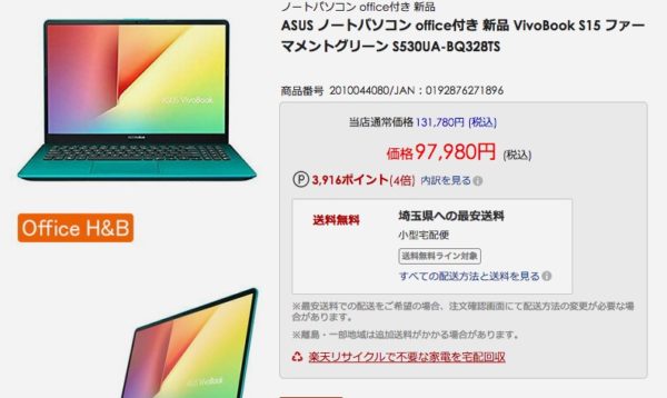 楽天市場ぷらら店で「35,980円 税込み<送料無料>」で7%ポイント付き、尚且正月元旦から使える「5000円OFFクーポン」対象商品!だから実質3万円切る 超ラッキー!