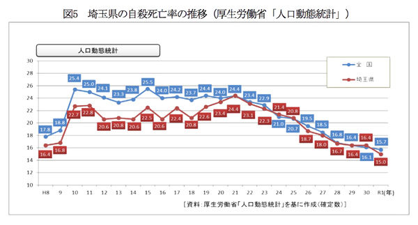 埼玉県内での自殺死亡率