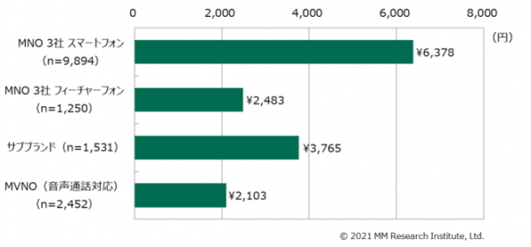 MM総研「携帯電話の月額利用料金とサービス利用実態(2020年12月時点)」