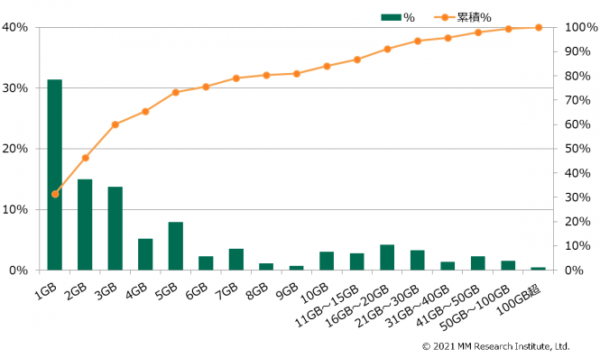 - 利用者の平均モバイルデータ通信量は6.94GB(ギガバイト)ながら、59.2%のユーザーが3GB以下、8割が7GB以下