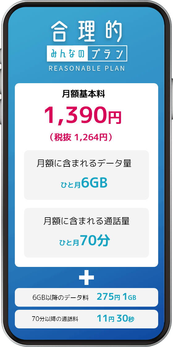 データ通信よりも電話通話かけ放題が手放せないビジネスマン向けには日本通信SIM「合理的かけほプラン」にほぼ匹敵する価格に抑えられていて ◎