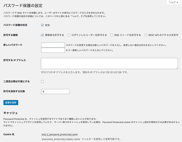 BASIC認証をスルーするIPアドレス設定、パスワード有効期間等が簡易設定できます。