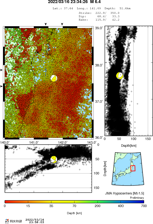 もしかしたら伝播速度差で2発目が福島東方沖? 5km/sで500kmだからさいたま市では100秒後なんで...微妙な感じ