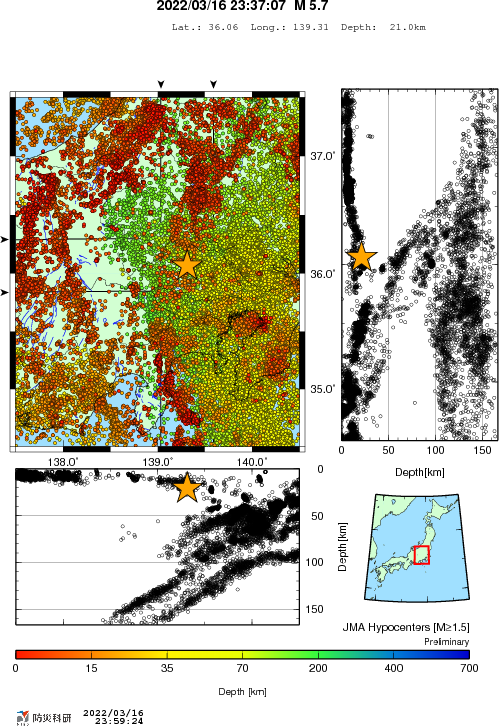 マグニチュードで言えば福島東方沖の方が大きいのだが、体感で言えばさいたま市では二発目の方が強烈だったような...