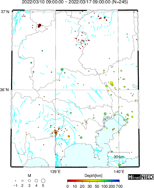 最近7日間の地震状況から昨日の「埼玉県西部」震源が消えていた...