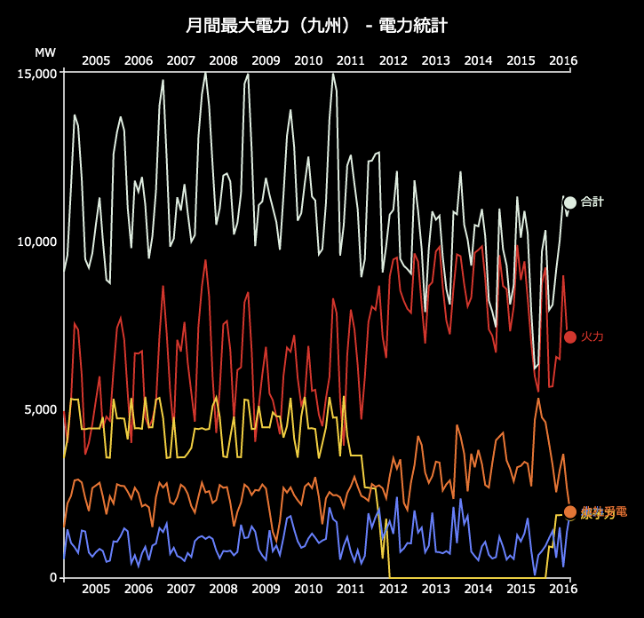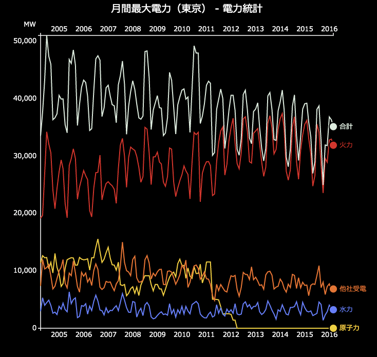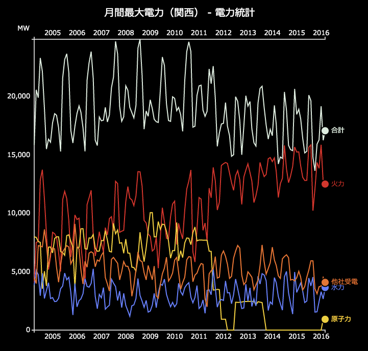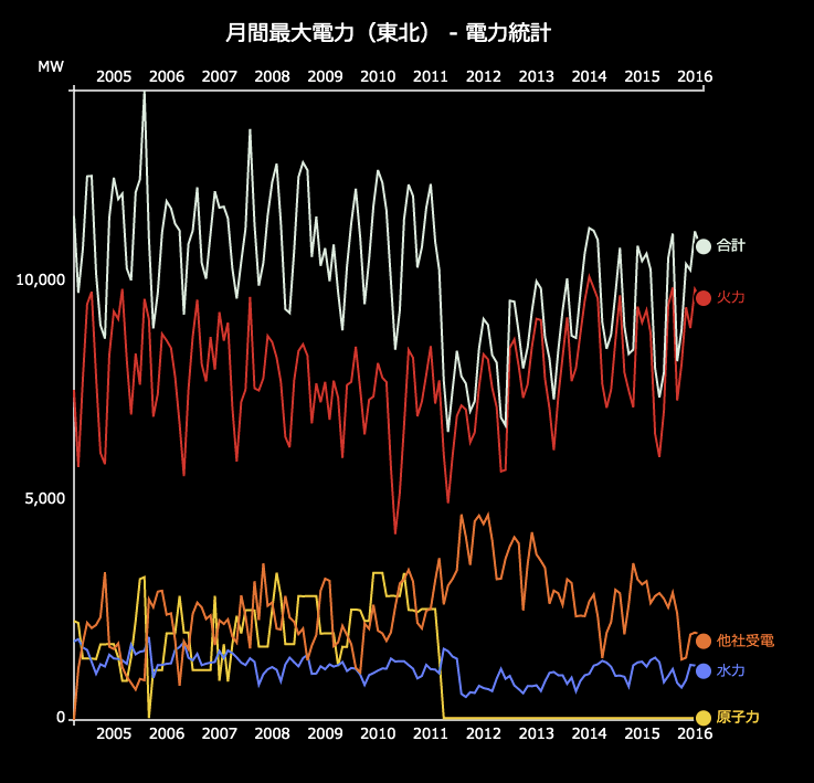 発電所データベース:月間最大電力 - 電力統計より転載0−