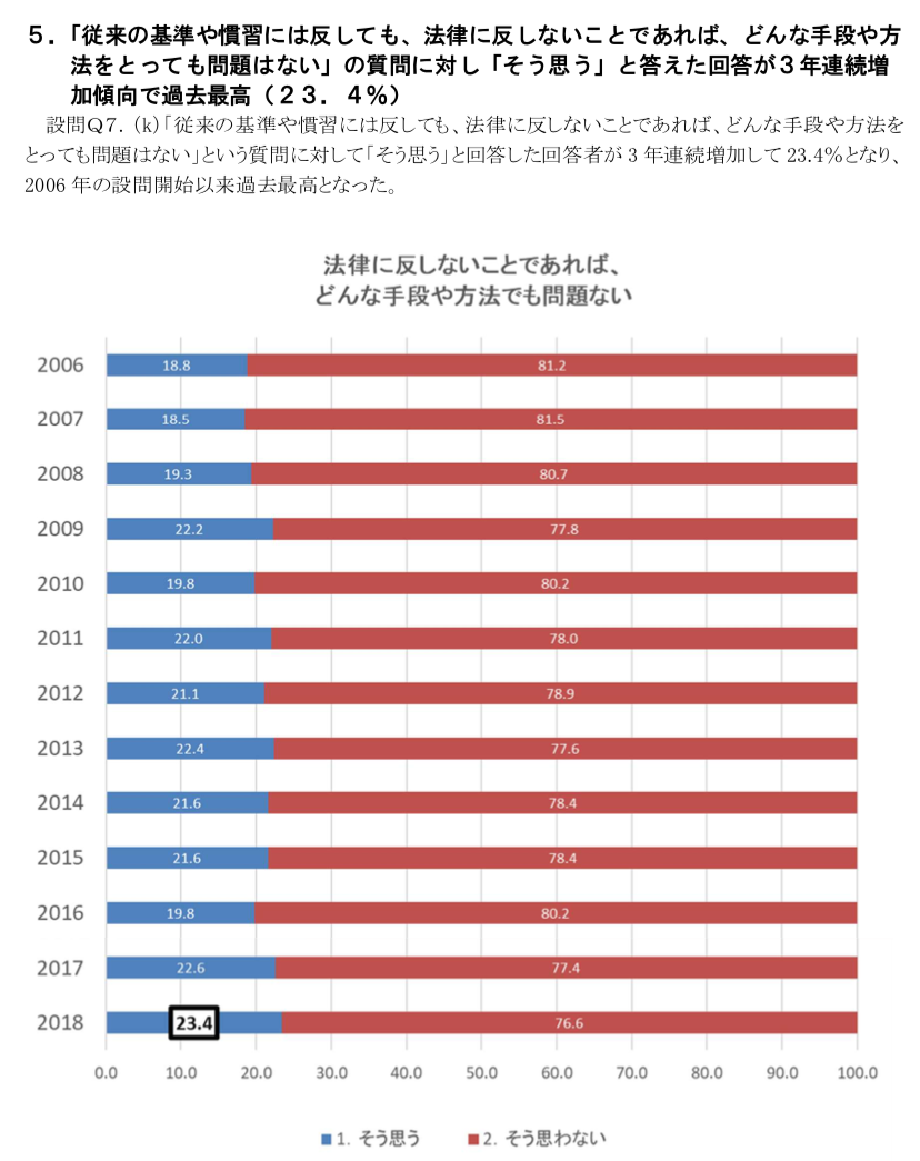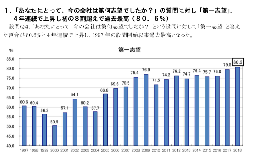 そもそも設問回答の真偽を疑う数値に思えるのはジブンだけでしょうか... なんだかこんなアンケートにさえ「会社に忖度する」傾向が高いのかな...と裏読みしてしまう。
