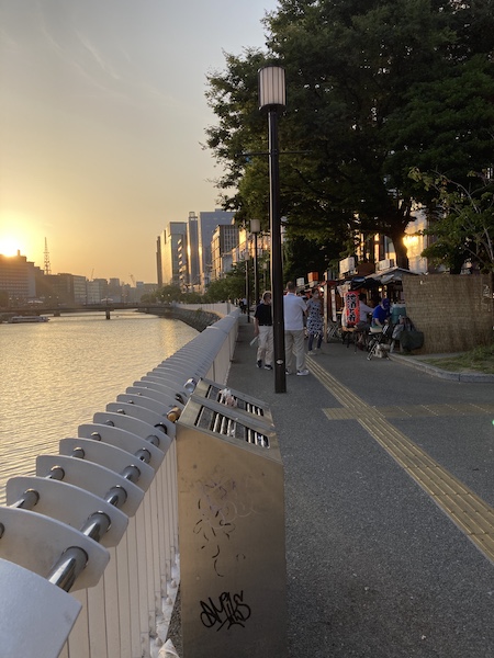 いろいろ詰めツメのスケジュールの合間に中洲・屋台でラーメン、もつ煮... 腹が膨れて一服したいときは離れの川岸に灰皿ボックスが100m間隔くらいで設置されています。福岡市内のコンビニにも灰皿ボックス、昔程では無いにしろ適度に喫煙スペースが街なかにも確保されているからなのかその割に喫煙者が群がってる光景もなく、非喫煙者から侮蔑の目が向けられることも無いです。そう言えば筥崎宮の参道近辺にも灰皿ボックスは無いながら、禁煙等の注意喚起看板は無くて参道脇を外れた場所で、警察官と立ち話しながら一服させていただきました。